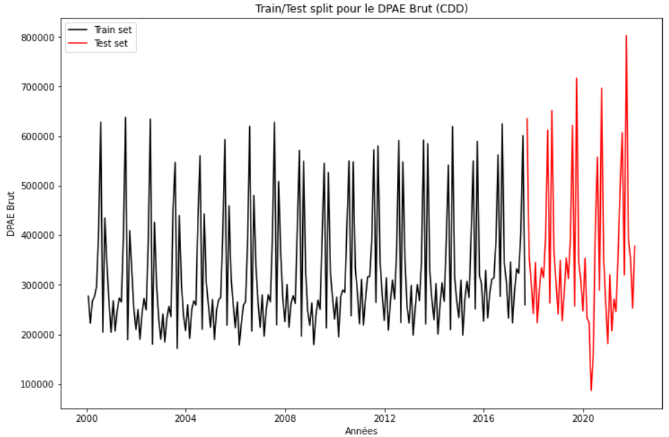 As in machine learning, it is essential to split our data into two parts, namely a training part and a test part to check if the prediction made is correct.